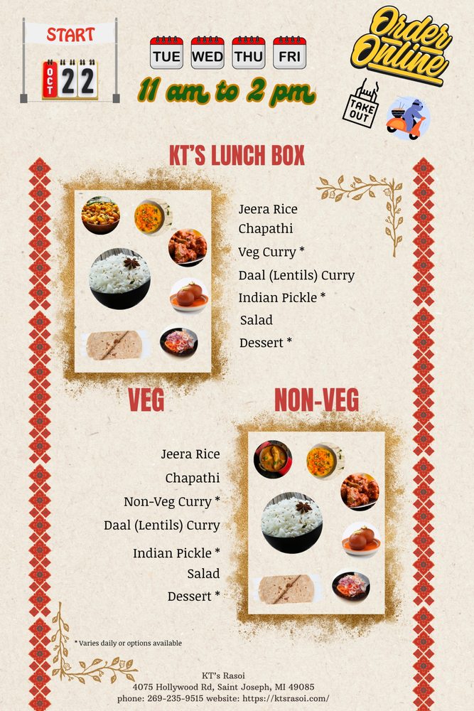 Welcome to KT's Rasoi, an exciting Indian culinary experience located at 4075 Hollywood Rd, St Joseph, MI. This delightful eatery offers an array of authentic dishes that captivate the senses.